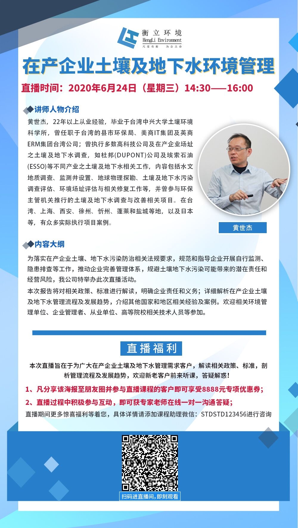 導(dǎo)讀 為落實(shí)在產(chǎn)企業(yè)土壤、地下水污染防治相關(guān)法規(guī)要求,規(guī)范和指導(dǎo)企業(yè)開(kāi)展自行監(jiān)測(cè)、隱患排查等工作,推動(dòng)企業(yè)完善管理體系,規(guī)避土壤地下水污染可能帶來(lái)的潛在責(zé)任和經(jīng)營(yíng)風(fēng)險(xiǎn),我司特舉辦此次直播活動(dòng)。 本次報(bào)告將對(duì)相關(guān)政策、標(biāo)準(zhǔn)進(jìn)行解讀,明確企業(yè)責(zé)任和義務(wù);詳細(xì)解析在產(chǎn)企業(yè)土壤及地下水管理流程及發(fā)展趨勢(shì),介...
