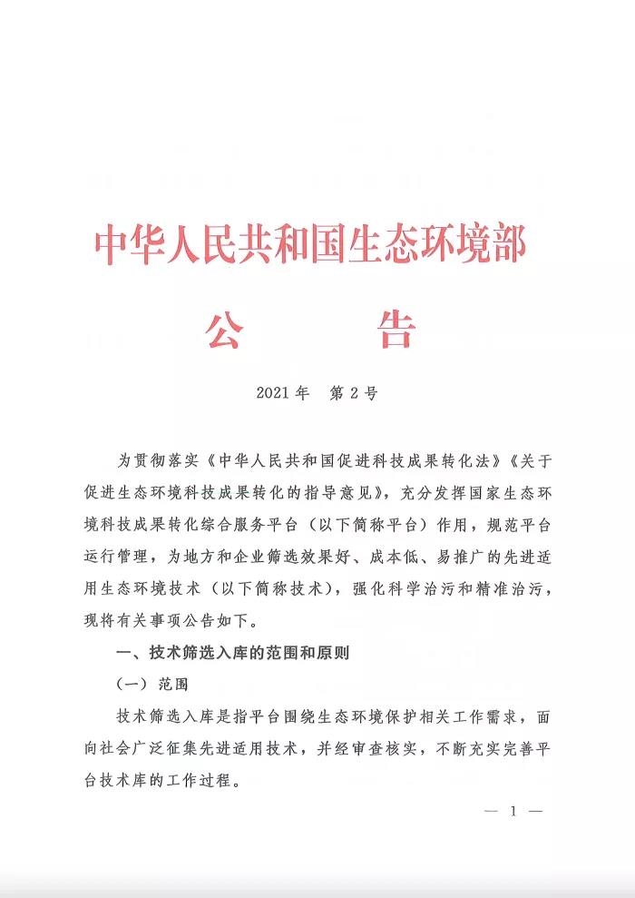 根據(jù)《關(guān)于組織推薦綠色技術(shù)的通知》(發(fā)改辦環(huán)資〔2020〕493號),經(jīng)各單位審核推薦及第三方機構(gòu)組織專家評審等程序,現(xiàn)將通過評審的技術(shù)名單予以公示。公示期為2020年12月14日至12月20日,具體名單見附件。 如有異議,請在公示期內(nèi)以書面形式提出意見,反饋至國家發(fā)展改革委(環(huán)資司)。書面意見請寫...