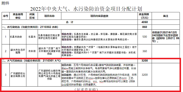 韶關(guān)市生態(tài)環(huán)境局關(guān)于2022年中央大氣、水污染防治資金項(xiàng)目分配計(jì)劃的公示 按照《廣東省省級財(cái)政專項(xiàng)資金管理辦法(試行)》(粵府〔2018〕120號)和《廣東省省級生態(tài)環(huán)境專項(xiàng)資金管理細(xì)則》(粵環(huán)函〔2019〕1135號)等要求,現(xiàn)將2022年中央大氣、水污染防治資金項(xiàng)目分配計(jì)劃予以公示。 如有異議,...