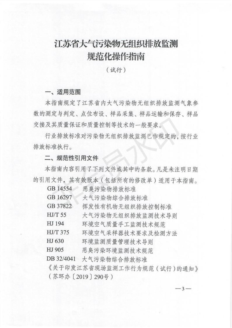 為規(guī)范指導(dǎo)江蘇省生態(tài)環(huán)境監(jiān)測機(jī)構(gòu)開展大氣污染物無組織排放監(jiān)測,強(qiáng)化污染溯源監(jiān)測、監(jiān)督執(zhí)法監(jiān)測的科學(xué)性、有效性和規(guī)范性,提升“科學(xué)治污、精準(zhǔn)治污”能力,更好支撐大氣污染防治工作,近日,江蘇省生態(tài)環(huán)境廳印發(fā)了《江蘇省大氣污染物無組織排放監(jiān)測規(guī)范化操作指南(試行)》。 全文如下: ...