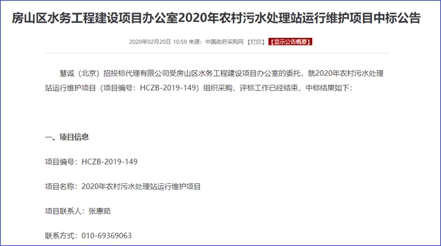 截圖源于中國政府采購網(wǎng) 源于中國政府采購網(wǎng)近日公開消息,由北京金河水務(wù)建設(shè)集團(tuán)有限公司、華航環(huán)境發(fā)展有限公司、北京中聯(lián)環(huán)工程股份有限公司組成的聯(lián)合體預(yù)中標(biāo)北京市房山區(qū)農(nóng)村污水治理工程(處理站一片區(qū)、二片區(qū))PPP項目(編號:GXTC-A-1961004)。運(yùn)維服務(wù)水費(fèi)單價為4.11元/㎡、可用性年付...