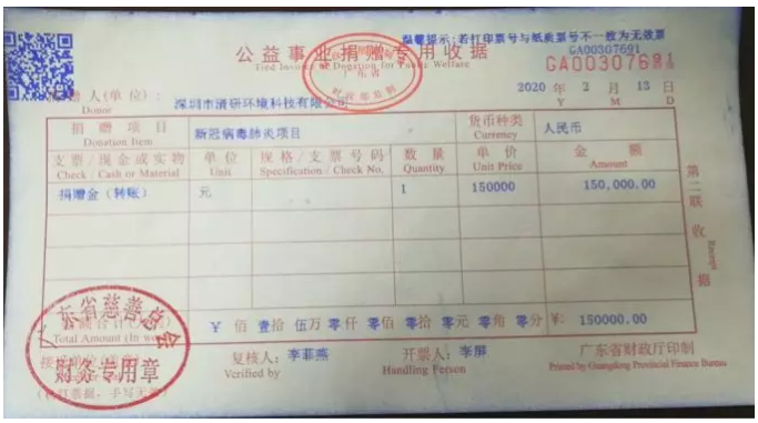 為表達(dá)對前線抗疫戰(zhàn)士的敬意和支持,2020年2月13日,深圳市清研環(huán)境科技有限公司向廣東省慈善基金會捐助現(xiàn)金15萬元。同時(shí),清研環(huán)境骨干員工組成的“戰(zhàn)狼團(tuán)隊(duì)”也自發(fā)捐助3.25萬元用于為抗疫戰(zhàn)士購買愛心物資,其中第一批愛心物資已于當(dāng)天交給支援武漢的廣東醫(yī)療隊(duì)醫(yī)護(hù)人員。廣東省慈...