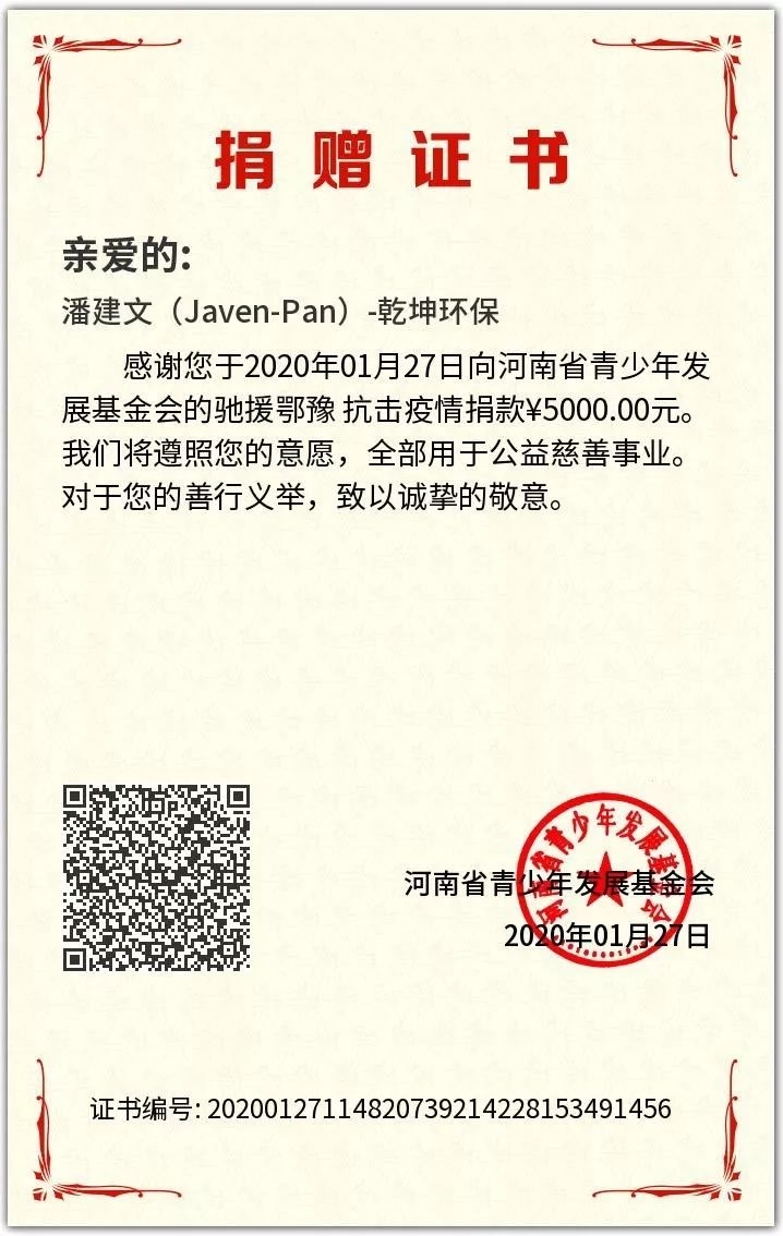全國(guó)人民在黨中央的堅(jiān)強(qiáng)領(lǐng)導(dǎo)下打響了新冠肺炎疫情阻擊戰(zhàn),發(fā)生了許多可歌可泣的感人事跡。無(wú)數(shù)企業(yè)捐錢(qián)捐物,有錢(qián)出錢(qián)無(wú)錢(qián)出力眾志成城,共克時(shí)艱。 作為一家擁有高度社會(huì)責(zé)任感的環(huán)保企業(yè),乾坤環(huán)保股份有限公司(下文簡(jiǎn)稱“乾坤環(huán)保”)連續(xù)多次捐贈(zèng)防疫物資,履行社會(huì)責(zé)任,為打贏這場(chǎng)沒(méi)有硝煙...